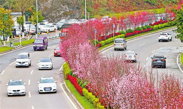 3月8日,巴南區(qū)渝南分流道,觀賞桃花提前綻放,姹紫嫣紅,美不勝收。近年來,重慶堅持“兩點”定位,“兩地”“兩高”目標,持續(xù)推動城市提升,讓重慶顏值更高、氣質(zhì)更佳。據(jù)了解,重慶今年還將實施街頭綠地提質(zhì)工程。按照計劃,今年將建設街頭綠地項目200個、面積200萬平方米。