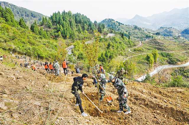 3月12日是全國義務植樹節(jié)。當天,我市各地干部群眾抓住春季造林有利時機,掀起2021年春季義務植樹熱潮,用自己的雙手,在長江邊、在大山上、在景區(qū)里、在房前屋后,將一顆顆新綠栽種在巴渝大地上。