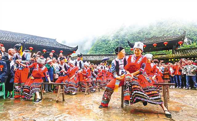 游客在犀牛寨體驗傳統(tǒng)的土家族婚禮。(受訪者供圖)
