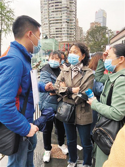 小陳穿著一身藍色羽絨服,雖然戴著口罩,但眼神里卻透著一股精神勁兒。他胸前掛了一張打印的自我介紹:男,27歲,衛(wèi)生健康委員會(事業(yè)編),獨生子,渝北區(qū)人,211本科,身高173,70公斤,工作經(jīng)歷:……本人性格好,會煮飯,顧家庭,有責任心。尋:28歲以內(nèi),條件相當,性格好的女生。電話……