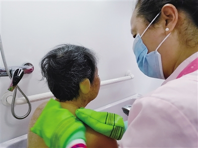 洗澡,是一件私密的事!白鲋熓紫纫^(guò)的就是自己的心理關(guān),不嫌棄‘老人味兒’,才能安心做這項(xiàng)工作!瘪T地華坦言,很多人都會(huì)覺(jué)得給別人洗澡不好意思,但她曾在養(yǎng)老院從事六年護(hù)理工作,已習(xí)慣了和老人相處,“大學(xué)剛畢業(yè)的醫(yī)護(hù)小妹兒都能給老人做護(hù)理,我有啥做不了的?”