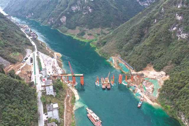 渝湘高速公路復(fù)線項(xiàng)目是重慶市高速路網(wǎng)規(guī)劃十一射線重慶巴南至湖南張家界高速公路的一段,也是G65渝湘高速公路的擴(kuò)能項(xiàng)目。項(xiàng)目建成后,重慶主城區(qū)將新增一條通往湖南、廣東的大通道,也將促進(jìn)彭水的旅游經(jīng)濟(jì)發(fā)展。這是3月18日,渝湘復(fù)線高速公路磨寨烏江特大橋修建現(xiàn)場(chǎng)。