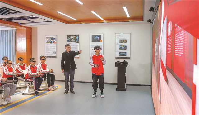 在渝中職教中心,學(xué)校與企業(yè)共建VR實(shí)訓(xùn)基地,開(kāi)發(fā)了文化旅游大數(shù)據(jù)應(yīng)用、大數(shù)據(jù)硬件支撐、大數(shù)據(jù)技術(shù)等方面的5門(mén)專(zhuān)業(yè)課VR課程資源,通過(guò)運(yùn)用3D虛擬成像教學(xué)系統(tǒng),進(jìn)行智慧服務(wù)專(zhuān)業(yè)群的沉浸式技能訓(xùn)練,讓師生們擁有了一個(gè)理論與實(shí)際、科技與前沿相融合的全新學(xué)習(xí)環(huán)境。