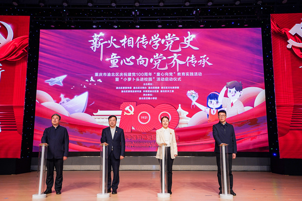 人民網(wǎng)重慶4月2日電 (劉政寧)為教育引導(dǎo)中小學(xué)生從小聽黨話、感黨恩、跟黨走,培養(yǎng)擔(dān)當(dāng)民族復(fù)興大任的時(shí)代新人,4月2日下午,渝北區(qū)慶祝建黨100周年“童心向黨”教育實(shí)踐活動(dòng)暨“小蘿卜頭進(jìn)校園”活動(dòng)在渝北區(qū)巴蜀小學(xué)校正式啟動(dòng)。