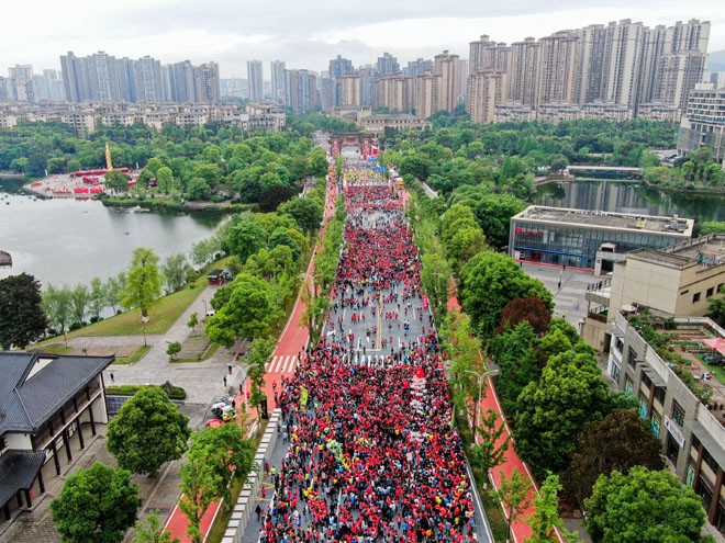 本屆馬拉松賽道選址永川城區(qū),賽道平坦廣闊。在比賽中,選手們途經(jīng)興龍湖、人民大道、觀音山公園等永川地標(biāo)景點,在奔跑中欣賞到了永川“三面青山、六水環(huán)繞、九湖美景”的城市風(fēng)采。