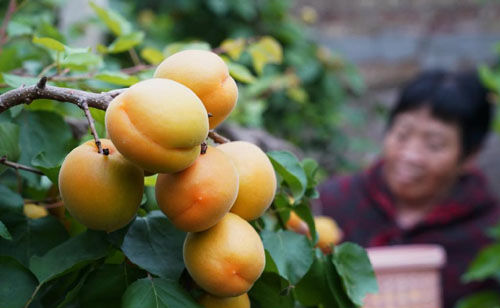 4月6日,順平縣蒲上鎮(zhèn)伍郎村育順農(nóng)業(yè)基地的工人在大棚內(nèi)采摘甜杏。