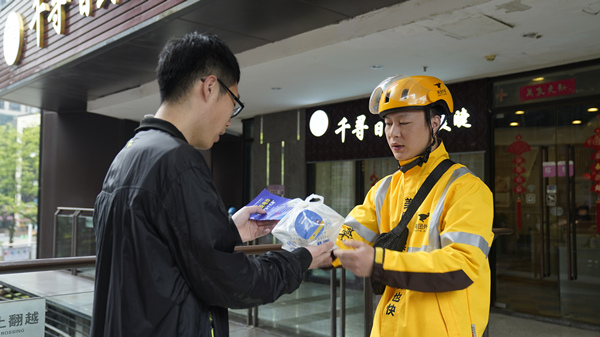 外賣(mài)小哥化身志愿者 日常送餐時(shí)進(jìn)行反詐宣傳