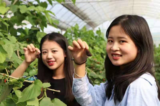 游客采摘桑葚。潼南區(qū)融媒體中心供圖