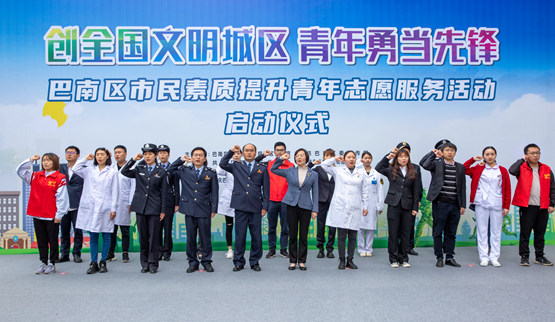 啟動儀式上,青年志愿者代表發(fā)出《文明巴南,有你有我》的青春倡議,號召廣大青年爭做創(chuàng)文先鋒,身體力行感染身邊的市民群眾,讓大家以主人翁的姿態(tài)投身到創(chuàng)文工作中來。隨后30名青年文明號號長共同發(fā)出“熱情服務,高效服務,文明服務”的青春誓言。