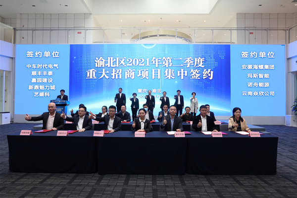 “今天的集中簽約,既是大家對渝北投下的一張‘信任票’,也是渝北給大家簽下的一份‘承諾書’!庇灞眳^(qū)委書記唐川在簽約活動上說,2020年,渝北成功引進(jìn)了一批高技術(shù)性、高成長性的重大項目,全區(qū)地區(qū)生產(chǎn)總值成功突破2000億元大關(guān),這既展現(xiàn)了渝北經(jīng)濟(jì)的強(qiáng)大韌性,更標(biāo)注了渝北高質(zhì)量發(fā)展的新高度。