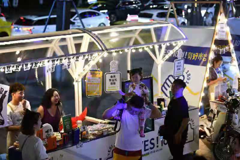 開幕當天,意大利流行搖滾樂隊“飛毯i Tappeti Volanti”趕赴重慶為“重逢·有好市”帶來精彩表演。同時,還集合了更多創(chuàng)意潮流品牌,為市民和游客帶來獨具匠心的創(chuàng)意攤位和神秘產品。在以創(chuàng)意海島為主題的本次夏日夜市活動中,成為一個個燦爛的小島。從市民中優(yōu)選的潮流攤主同樣亮眼:火鍋、甜品、漢服、塔羅、手辦等流行文化攤主,吸引了大量粉絲。
