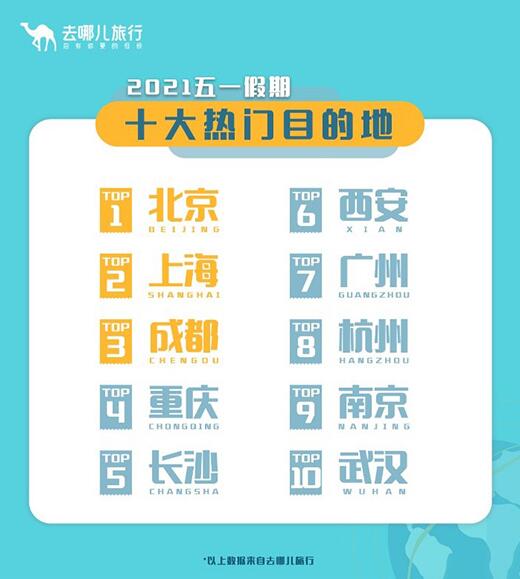 “五一”假期十大熱門目的地。去哪兒供圖