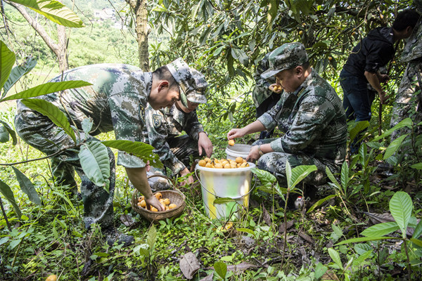 民兵幫助農(nóng)戶采摘枇杷。洛磧鎮(zhèn)人民武裝部供圖