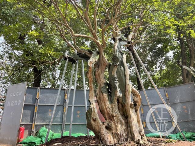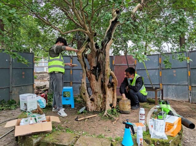 今年4月初,江北區(qū)園林綠化管理所與市園林綠化中心一起對(duì)這株紫薇進(jìn)行了一次全面“體檢”。