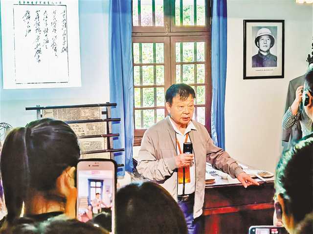 5月10日,吳連登在中共中央南方局暨八路軍駐重慶辦事處舊址毛澤東辦公室講述毛澤東同志艱苦樸素的生活細(xì)節(jié)。記者 趙迎昭 攝/視覺重慶