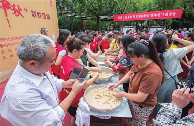 東城街道“好鄰居”志愿者和居民歡度中秋活動(dòng),現(xiàn)場制作傳統(tǒng)手工小糍粑