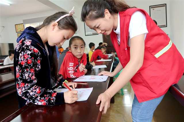 福壽鎮(zhèn)“五點(diǎn)課堂”志愿服務(wù)項(xiàng)目,對(duì)留守兒童開展繪畫培訓(xùn)