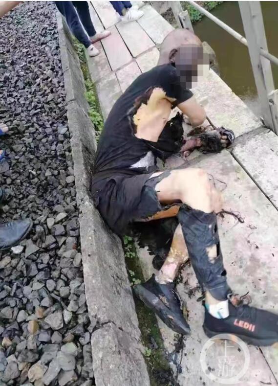 當(dāng)?shù)叵啦块T到場(chǎng)后發(fā)現(xiàn),男子被電得頭部漆黑,衣物大面積熔毀,受傷嚴(yán)重,但意識(shí)還算清醒。