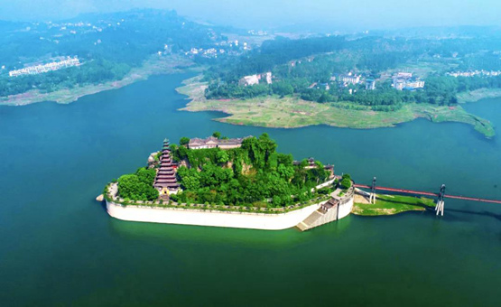 圍堤環(huán)繞下,石寶寨宛如江中盆景。重慶市旅游營銷中心供圖
