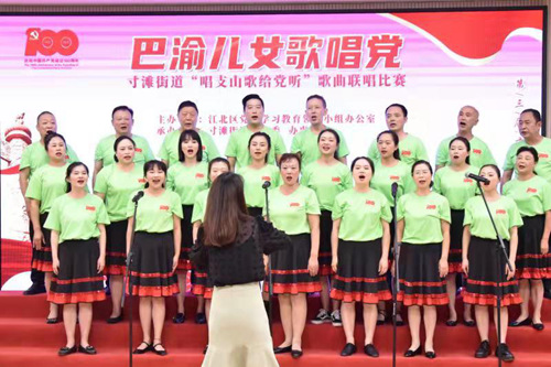 人民網(wǎng)重慶5月17日電 5月17日下午,在江北區(qū)黨群政治生活中心紅色禮堂,一場(chǎng)以“唱支山歌給黨聽”為主題的歌曲聯(lián)唱比賽在此舉行。來自寸灘街道各科室各社區(qū)的9支參賽隊(duì)伍用歌聲抒發(fā)著對(duì)黨和祖國(guó)的無限熱愛,唱響著永遠(yuǎn)跟黨走的錚錚誓言。