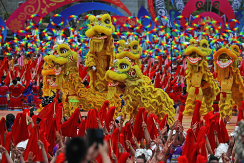 人民網(wǎng)重慶5月20日電 伴隨著歡快的鼓點(diǎn),苗族經(jīng)典民歌《嬌阿依》的音樂響起,萬余名身著盛裝的苗族兒女在彭水縣蚩尤九黎城跳起來,共慶苗族傳統(tǒng)節(jié)日。5月19日,2021·第十屆中國烏江苗族踩花山節(jié)暨中國·彭水水上運(yùn)動(dòng)大賽分別(以下簡稱“一節(jié)一賽”)在彭水苗族土家族自治縣蚩尤九黎城和烏江彭水縣城水域精彩啟幕。