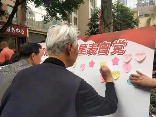 接著,黨員們把想對(duì)黨說的話寫在便簽紙上,制作成一張心意卡,貼到主題展板上。一個(gè)個(gè)文字跳動(dòng)在紙上,句句祝福、字字真誠,表達(dá)出黨員們對(duì)黨的熱愛之情。