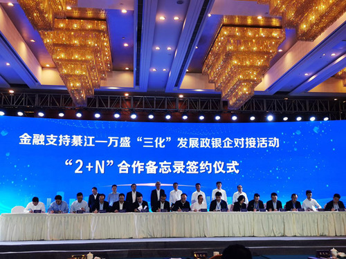 在活動現(xiàn)場,綦江區(qū)、萬盛經(jīng)開區(qū)與銀行機構(gòu)簽訂了“2+N”合作備忘錄和貸款協(xié)議。根據(jù)備忘錄,29家銀行機構(gòu)向綦江-萬盛“三化”發(fā)展總體意向性授信1170億元,16家銀行機構(gòu)向綦江、萬盛企業(yè)代表現(xiàn)場放款13.03億元。
