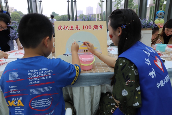 為了增強(qiáng)小朋友們的愛(ài)國(guó)意識(shí),傳承紅色革命精神,現(xiàn)場(chǎng)還特意為家長(zhǎng)和孩子們安排了繪畫(huà)活動(dòng),在家長(zhǎng)和小朋友們的共同配合下,他們彼此分工合作,用一筆一劃抒發(fā)著對(duì)黨和祖國(guó)的熱愛(ài)。