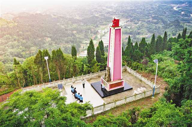 5月30日,重慶日報(bào)記者登上寓意“來之不易”的99級臺階,來到銅鼓山英烈園的廣場中央的“銅鼓山剿匪作戰(zhàn)戰(zhàn)略模擬圖”旁!案鶕(jù)這幅模擬圖,你可以想象,當(dāng)年解放軍戰(zhàn)士扛著各型武器連續(xù)奮戰(zhàn),是多么不易!”榮昌區(qū)銅鼓鎮(zhèn)四級調(diào)研員唐佑水稱。