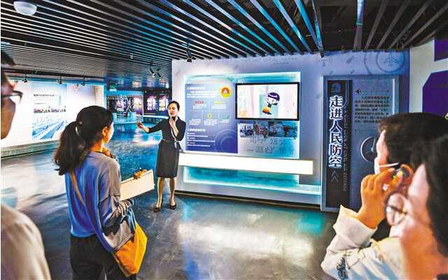 在這里,參觀者還可以到感應(yīng)區(qū)試聽三種不同類型的警報,了解各類警報的特點、發(fā)報規(guī)律和鳴放時機;查詢了解按構(gòu)筑形式、抗力等級、防化等級等方式劃分的人防工程類型,早期人防工程的建設(shè)、開發(fā)利用等珍貴影像。