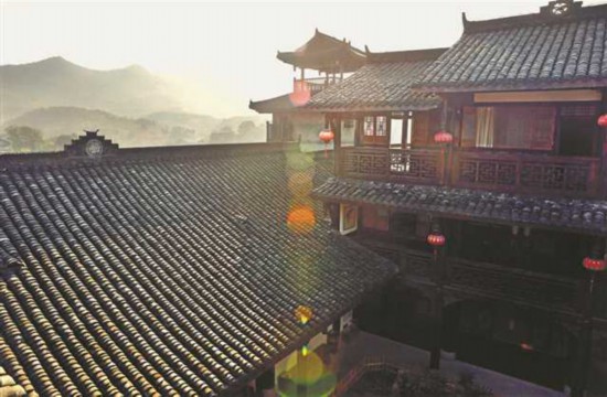 老街兩側(cè)均為2至3層全木質(zhì)穿斗結(jié)構(gòu)的店鋪。石板街蜿蜒曲折,連著座座豪宅大院和民居木樓。街上青磚黛瓦、榫卯木結(jié)構(gòu)、雕花木窗的明清建筑比比皆是。街后院落多為青磚黑瓦四合院,三樓或兩樓一底,其檐額、堂額、門窗等飾以各種圖案,具有典型的徽派風(fēng)格,大戶人家還有護院碉樓,每個院落自成一體,別有洞天。石板街臨街店鋪全為兩層樓,上層住人,下層作店,清一色的木板墻、木板門。
