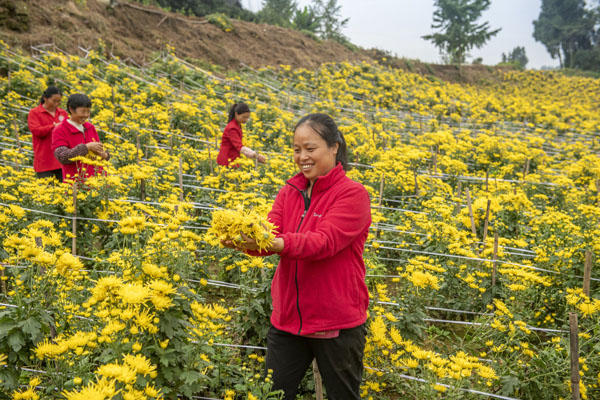 村民們種植的金絲皇菊。東溫泉鎮(zhèn)供圖