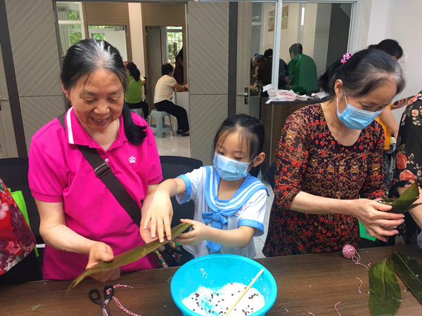 在包粽子環(huán)節(jié),老黨員們認(rèn)真細(xì)致地教授小朋友們、年輕黨員包粽子的技巧,卷粽葉、加米、加紅棗、掩口、裹緊、系繩,一個(gè)個(gè)忙得不亦樂乎。最后,大家一起品嘗了自己的勞動(dòng)成果!敖裉斓幕顒(dòng)很有意義,讓小朋友們更加深入地了解了我們的傳統(tǒng)節(jié)日,還體驗(yàn)了包粽子的樂趣,希望社區(qū)以后能多開展此類活動(dòng)!庇變簣@帶隊(duì)老師這樣表示。(劉政寧、晏霞)