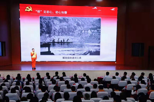 首場宣講在永川區(qū)神女湖小學(xué)舉行,主講人是青年宣講志愿服務(wù)隊的兩名志愿者凌何和羅南洋,他們分別以《“橋”見初心,初心如磐》和《百年三問》為題,向百余名大中專院校學(xué)生和群眾代表作了精彩的宣講。