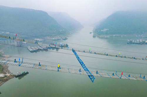 郭家沱長(zhǎng)江大橋貓道全線貫通