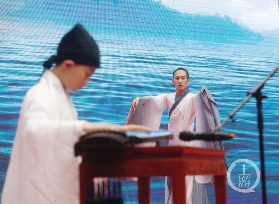 上游新聞?dòng)浾攥F(xiàn)場(chǎng)看到,當(dāng)天上午,沙區(qū)的非遺傳承人和文化志愿者齊聚三峽廣場(chǎng),非物質(zhì)文化遺產(chǎn)展演活動(dòng)內(nèi)容多元,精彩連連。甫一開(kāi)場(chǎng),熱鬧歡騰的鼓舞《獅舞祥瑞》就吸引了觀眾的視線,隨后,金錢板、川劇變臉、古琴演奏、四川清音等接連上演,觀眾目不暇接,濃郁的文化韻味令人回味無(wú)窮。牡丹獎(jiǎng)得主、曲藝名家凌淋也以重慶市級(jí)非遺諧劇節(jié)目《一分不能少》壓軸亮相。最后,戲曲舞蹈《梨園春》為演出劃上句號(hào)。
