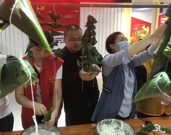 人民網(wǎng)重慶6月11日電 為讓黨員群眾深切感受到傳統(tǒng)節(jié)日氛圍,6月9日,渝北區(qū)龍山街道龍脊新村社區(qū)黨委、紀(jì)委攜手渝北區(qū)花園小學(xué)黨總支,聯(lián)合社區(qū)新時(shí)代文明實(shí)踐站、龍山街道社區(qū)養(yǎng)老服務(wù)中心開展了“不忘初心促廉潔 端午粽香沁龍脊”端午節(jié)活動(dòng)。