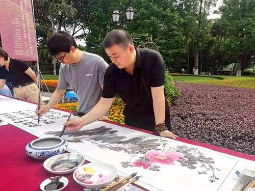 書畫長卷現(xiàn)場作畫。徐雯瑄攝