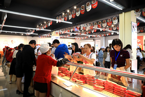 游客在百年張鴨子展示區(qū)購(gòu)買張鴨子系列產(chǎn)品。熊偉攝