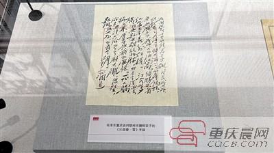 在展廳的展柜里,放著一份珍貴的手書,它是重慶談判時(shí)期毛澤東贈(zèng)予柳亞子的手書《沁園春·雪》。
