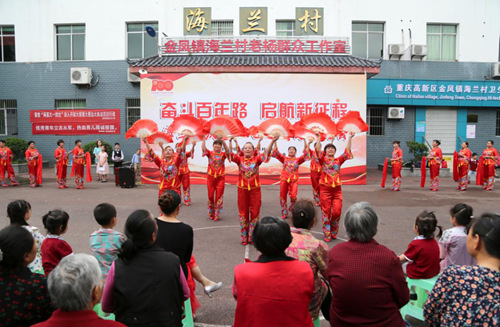 人民網(wǎng)重慶6月21日電 6月18日,高新區(qū)金鳳鎮(zhèn)海蘭村舉辦“奮斗百年路 啟航新征程”慶祝建黨百年文藝匯演,轄區(qū)文藝舞蹈隊(duì)、黨員、學(xué)生、居民150余人參與演出。