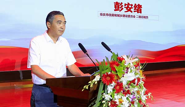 重慶市住房和建設委員會二級巡視員彭安緒致辭。重慶市物協(xié)供圖
