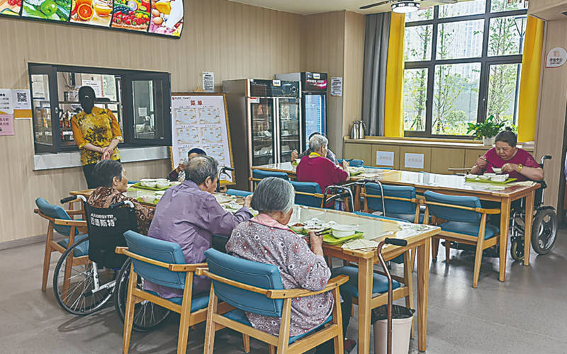 老人們?cè)陴B(yǎng)老服務(wù)中心用餐