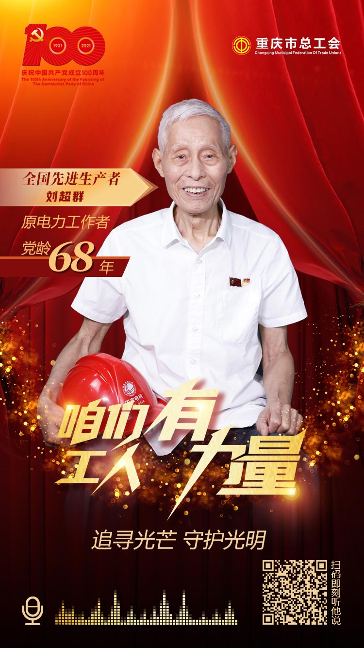 我是全國先進(jìn)生產(chǎn)者劉超群,入黨68年了,我曾經(jīng)是一名電力工作者,人民電力為人民的宗旨給了我力量,讓我永遠(yuǎn)走在守護(hù)萬家燈火的路上。