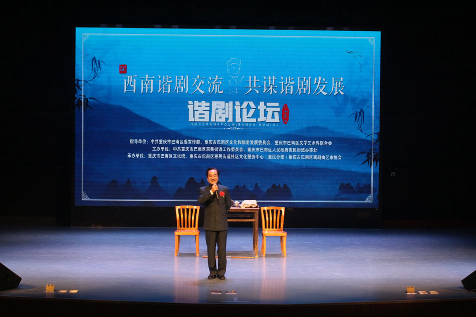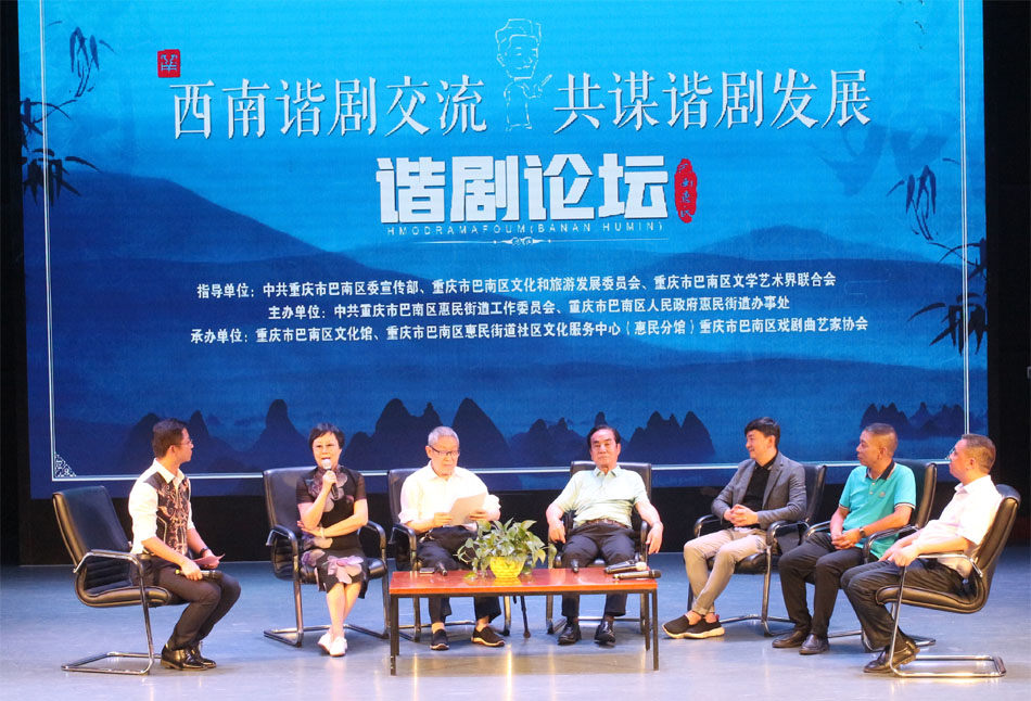人民網(wǎng)重慶6月29日電 6月28日,由巴南區(qū)惠民街道主辦在“西南諧劇交流 共謀諧劇發(fā)展”諧劇論壇在巴南區(qū)文化館舉行。這是繼2019年“文化尋根·藝術傳承”諧劇論壇后,諧劇屆的又一次聚會,希望為川渝黔地區(qū)諧劇的交流與發(fā)展提供交流平臺,探討研究西南諧劇融合發(fā)展,摸索探尋特色文化品牌塑造的路徑。著名諧劇表演藝術家凌宗魁、沈伐、張廷玉、叮當、梁正幫及各界曲藝愛好者160余人參加。