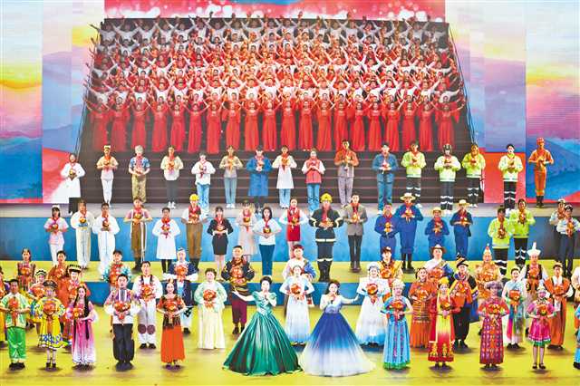 6月28日,“永遠(yuǎn)跟黨走——重慶市慶祝中國共產(chǎn)黨成立100周年文藝演出”在重慶大劇院舉行。圖為合唱《唱支山歌給黨聽》。記者 齊嵐森 攝/視覺重慶