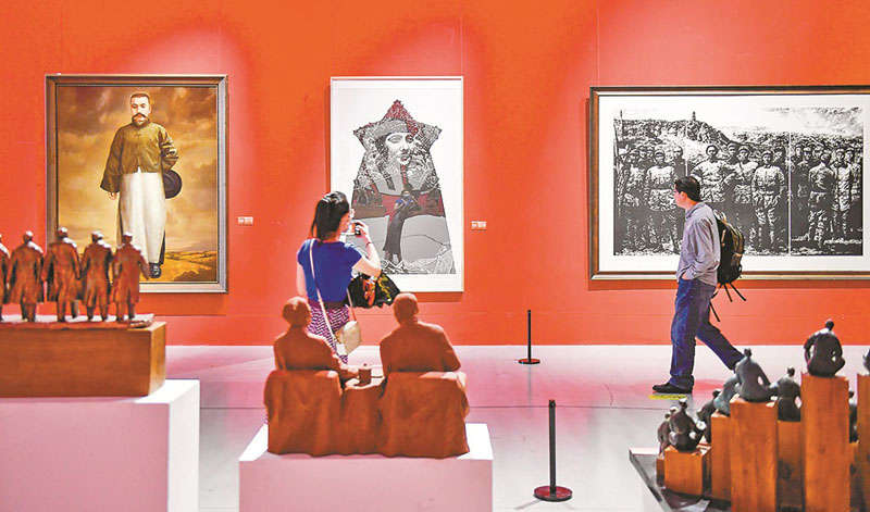 6月30日,“百年風(fēng)華 百花齊放——慶祝中國(guó)共產(chǎn)黨成立100周年第八屆重慶市美術(shù)作品展”在重慶美術(shù)館開展。圖為觀眾在現(xiàn)場(chǎng)參觀展覽。記者 齊嵐森 攝/視覺重慶