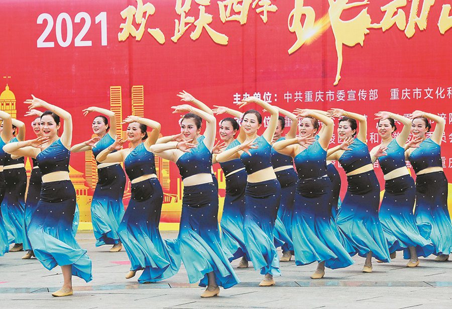 六月三十日,“永遠(yuǎn)跟黨走”——二○二一“歡躍四季·舞動山城”重慶市廣場舞展演在涪陵區(qū)舉行,來自我市的二十四支廣場舞隊伍同臺演出,慶祝中國共產(chǎn)黨成立一百周年。通訊員 何乾建 攝\視覺重慶