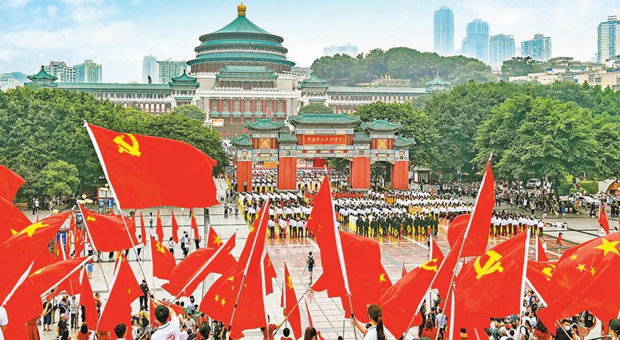 黨旗在中華大地上迎風招展。