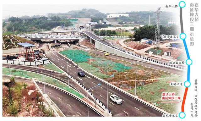嘉華大橋南延伸段三期主線工程包括嘉華大橋南延伸段南段主線道路、嘉華大橋往楊家坪方向匝道、李家沱往嘉華大橋方向匝道。